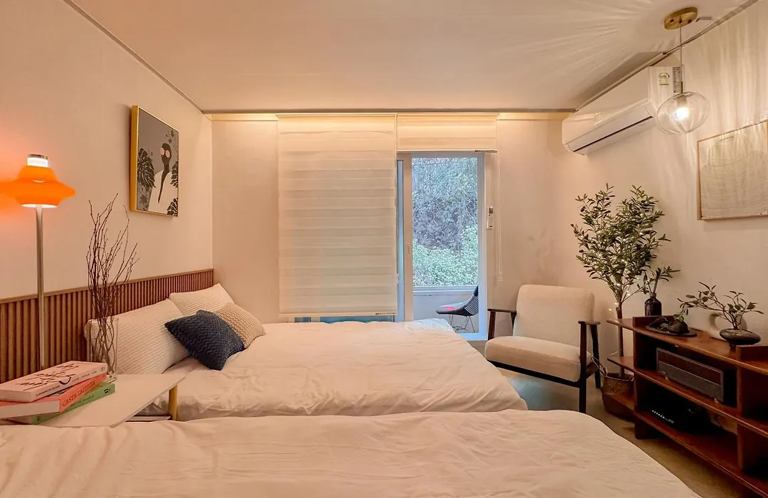 Tijdens een verblijf in Hongdae 5Minutes,Super Station Area Appartement Seoel van 34 m² kunnen gasten zich ontspannen op een terras op alleen 1 km van Hyundai Department Store.